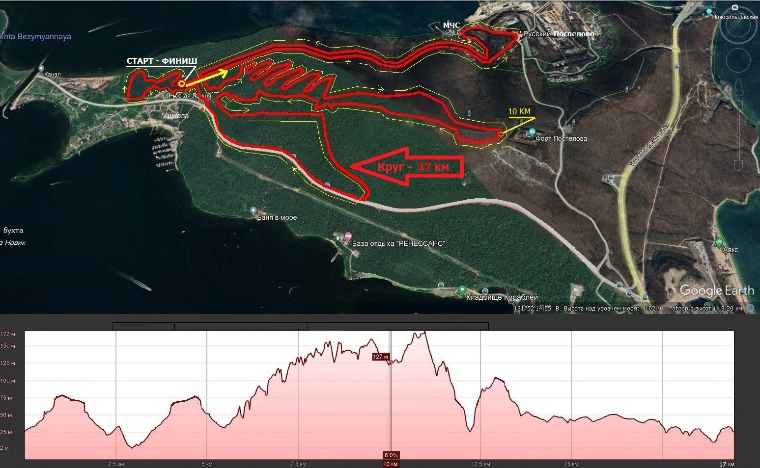 Длина круга – 17 км.